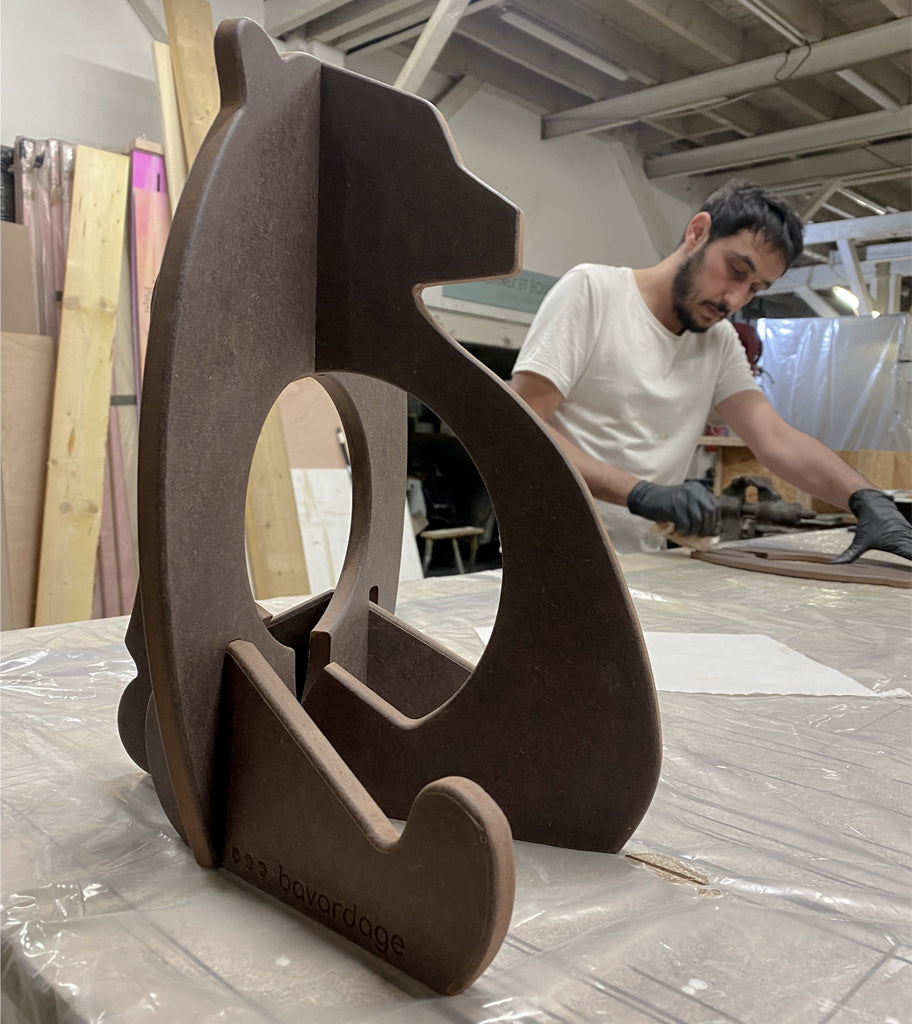 Le lendemain, j’en ai parlé à Lola, mon amie et collaboratrice. Emballée par l’idée, elle a immédiatement sorti son carnet de croquis. Ensemble, nous avons imaginé les premières formes, les premières expressions de notre ours lumineux. Dans l’atelier, Eliott nous a rejoints, curieux et impatient d’aider à créer ce premier prototype. Ensemble, nous avons découpé, assemblé, ajusté, jusqu’à voir naître notre tout premier ours lumineux.